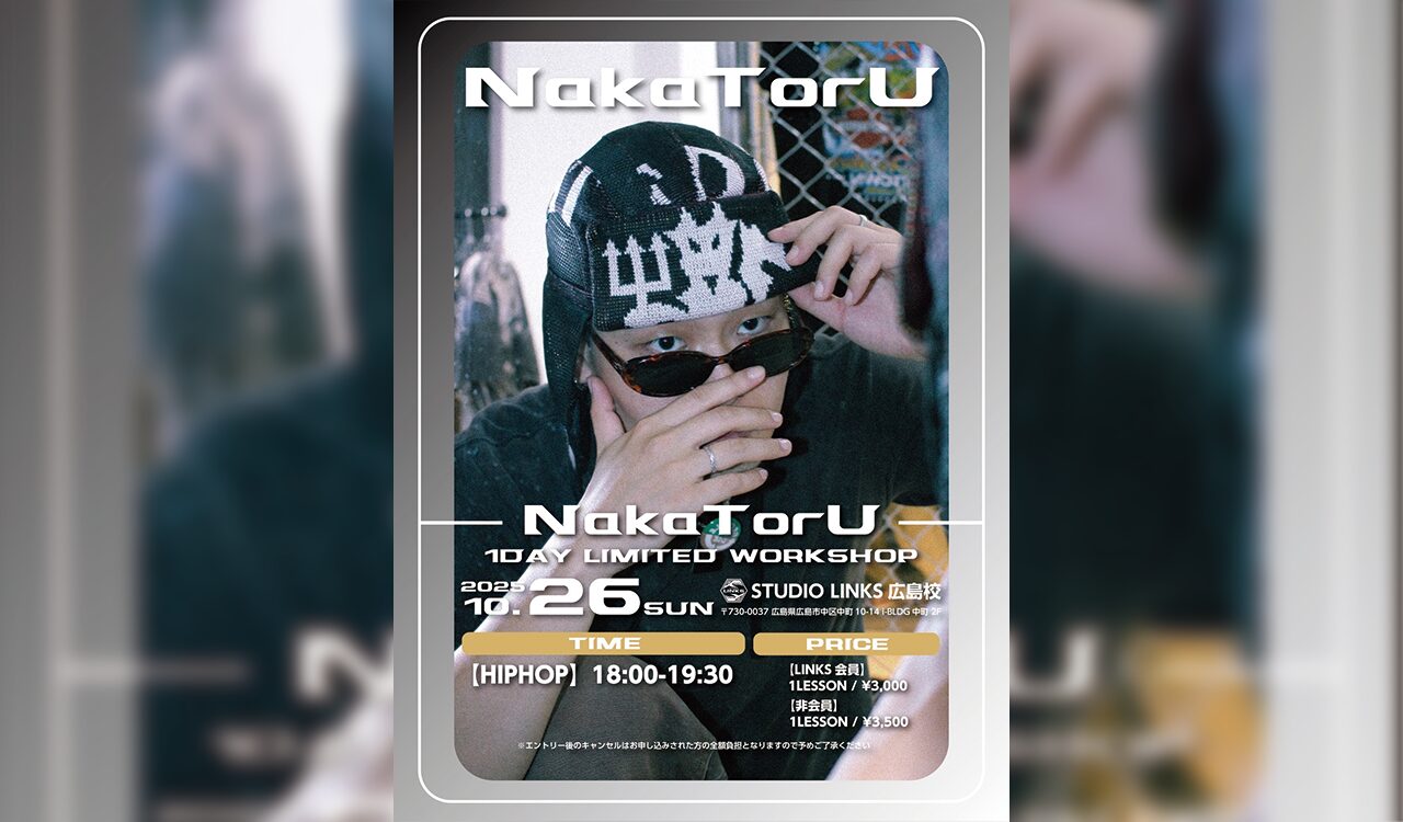 STUDIO LINKS広島校にてNakaTorU先生のこの日限りのWS開催決定 ❤️🔥HIPHOP CULTUREを全開に表現したNakaTorU STYLEを体感しよう🔥 […]