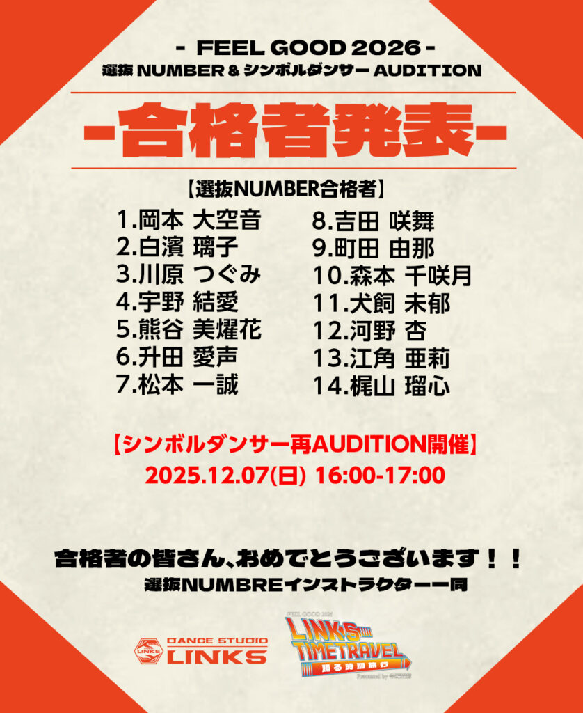 【2026 FEELGOOD 選抜ナンバー合格者発表 】